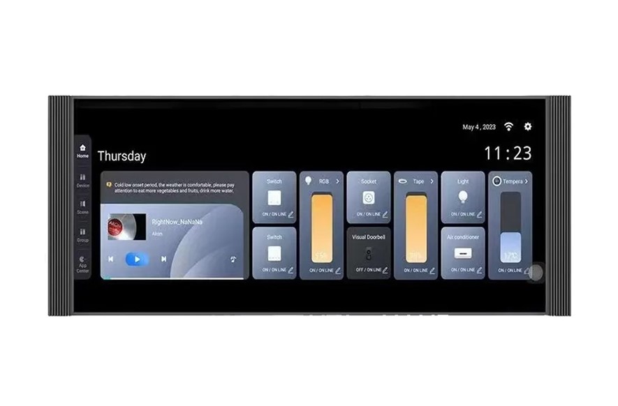 - صفحه نمایش لمسی 12 اینچی با کیفیت بالا:تاچ پنل و آمپیلی فایر 12 اینچ و هاب زیگبی مدل All in one 12 مجهز به یک نمایشگر لمسی 356×143 پیکسل است که تجربه کاربری روان و بصری را ارائه میدهد. این صفحه نمایش با وضوح بالا، کنترل آسان و سریع تمامی دستگاههای هوشمند خانه را ممکن میسازد.